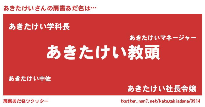 | 意味不明あだ名 | 『永久保存あきたけい』 |