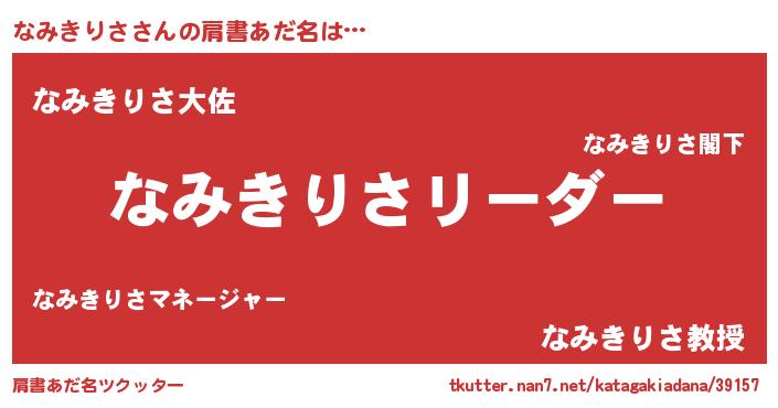 | 女子向けラノベタイトル風あだ名 | 『なみきりさは平凡を望む』 |