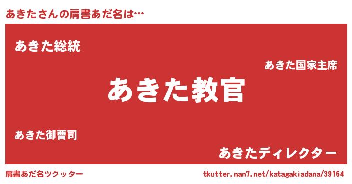 | 意味不明あだ名 | 『住所不定無職あきた(71歳)』『自称あきた』 |