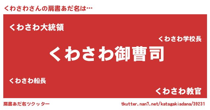 | 胡散臭い通販商品みたいなあだ名 | 『必ず成功する霊験あらたかなお札…その名も「くわさわ」』 |