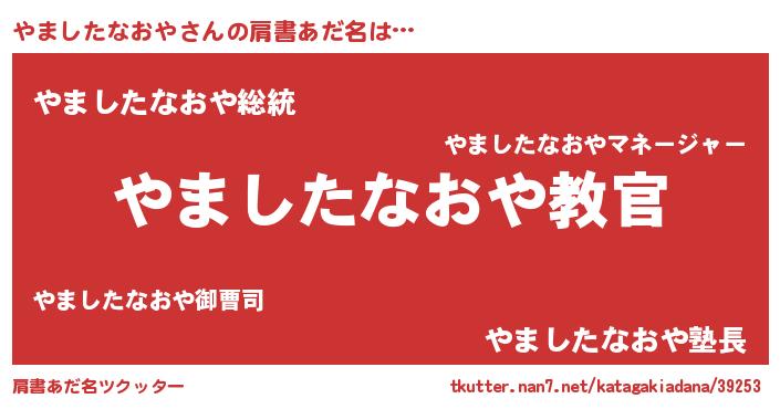 | 男性向けラノベタイトル風あだ名 | 『この素晴らしい世界にやましたなおやを!』 |