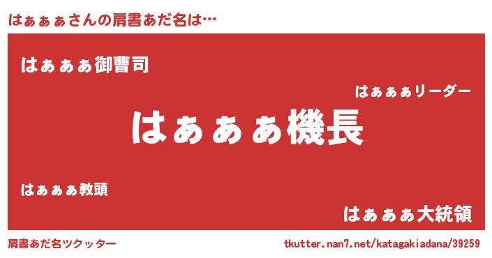 | ヘコむあだ名 | 『はぁっふぃ~』『豆乳』『はぁっぺ』 |