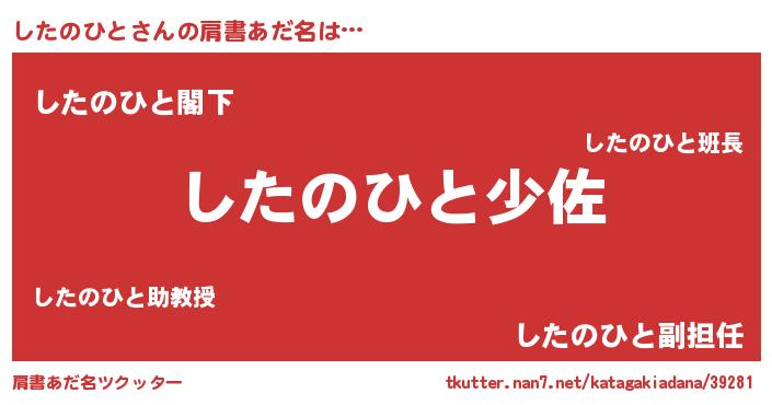 | ヘコむあだ名 | 『したのひと(小並感)』『したを』 |
