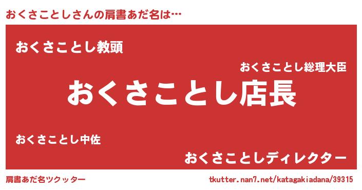 | 男性向けラノベタイトル風あだ名 | 『おくさことしの憂鬱』 |