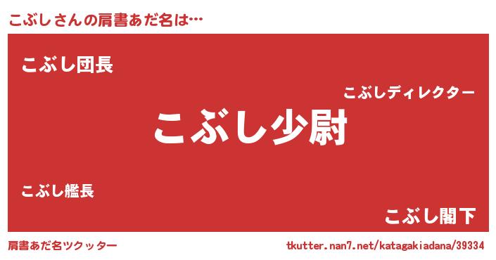 | 男性向けラノベタイトル風あだ名 | 『こぶし~年齢イコール彼女いない歴の魔法使い~』 |