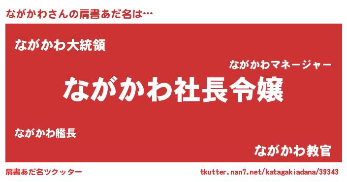 | 男性向けラノベタイトル風あだ名 | 『ながかわの憂鬱』『魔弾の王とながかわ』 |