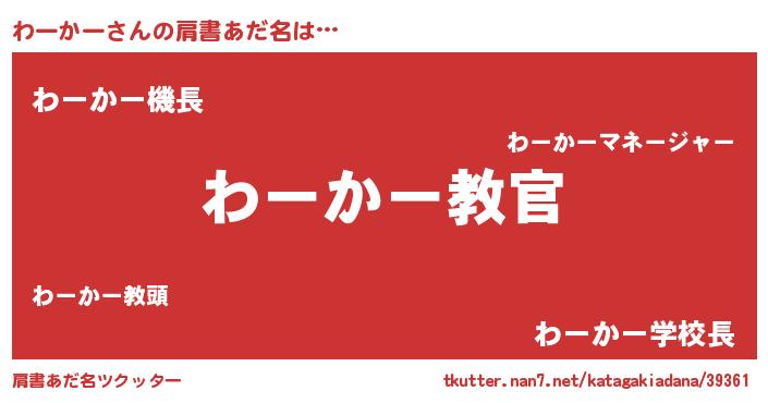 | ヘコむあだ名 | 『わーかー(小並感)』『わーもー』 |