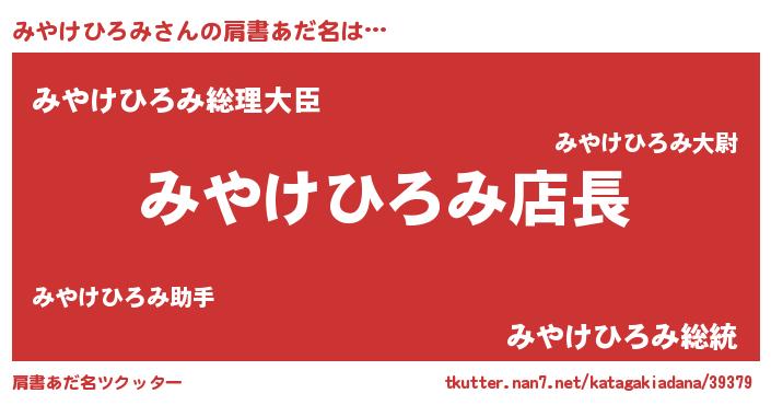 | ヘコむあだ名 | 『みやにゅー』『酢こんぶ』『みやお』 |
