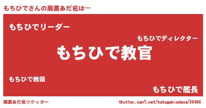 | 男性向けラノベタイトル風あだ名 | 『この素晴らしい世界にもちひでを!』 |