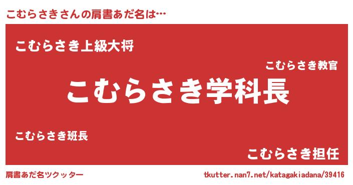 | ヒーロー風カッコイイあだ名 | 『天空の使者こむらさき』『仮面コムダー』 |