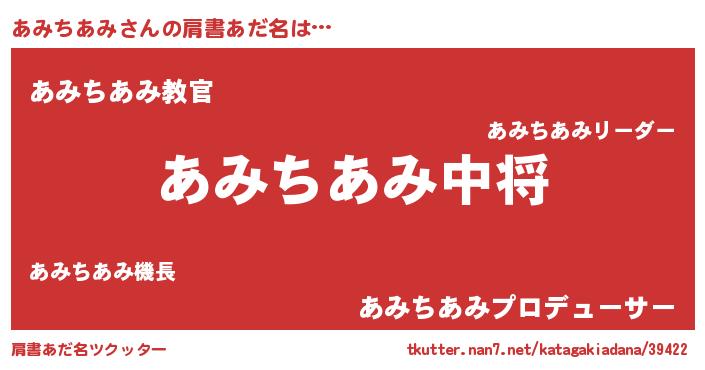 | ヒーロー風カッコイイあだ名 | 『仮面アミダー』『魔戒騎士アミ』 |