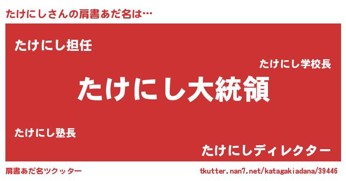 | 男性向けラノベタイトル風あだ名 | 『やはりたけにしの青春ラブコメはまちがっている 』 |