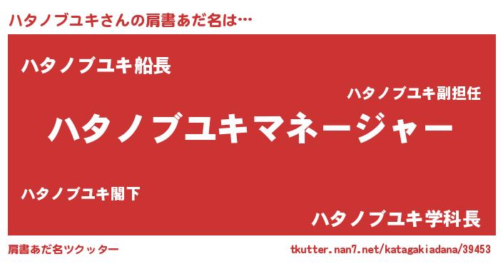 | ヒーロー風カッコイイあだ名 | 『慈愛の使者ハタノブユキ』 |