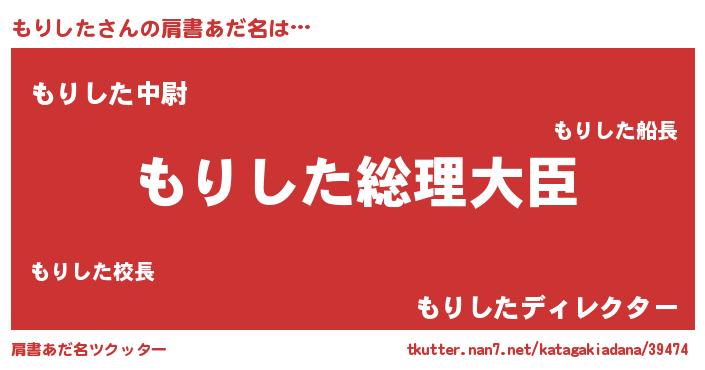 | ヒーロー風カッコイイあだ名 | 『ウルトラもりしたマン』『ネオモリシタ』 |