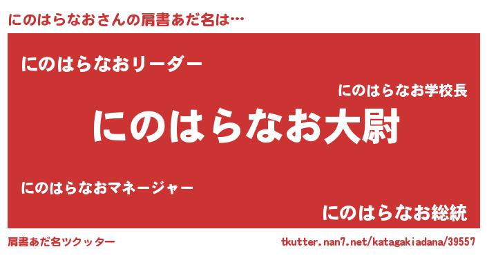 | ポケモン風あだ名 | 『ニノキング』『ヒニノハラナオ』 |