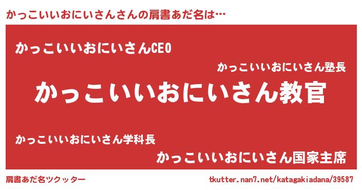 | 男性向けラノベタイトル風あだ名 | 『この素晴らしい世界にかっこいいおにいさんを!』 |