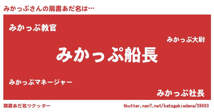 | 意味不明あだ名 | 『住所不定無職みかっぷ(1歳)』 |