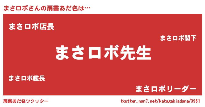 | 女子向けラノベタイトル風あだ名 | 『まさロボの契約王妃』『闇のまさロボ』 |