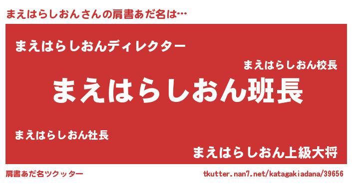 | 男性向けラノベタイトル風あだ名 | 『ダンジョンにまえはらしおんを求めるのは間違っているだろうか』 |