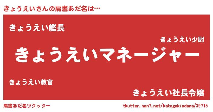 | ヘコむあだ名 | 『きょふぇ~』『きょうえい(笑)』 |