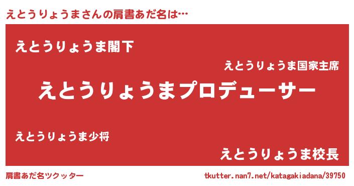 | 可愛いあだ名 | 『えとうちぇる』『えとうりょうまママ』 |