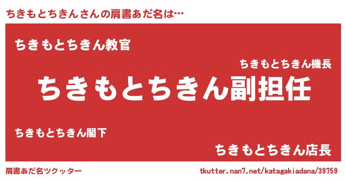 | ヘコむあだ名 | 『ちきもとちきん(遠い目)』『ちきふぇ~』 |