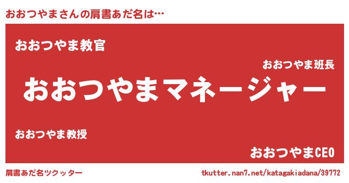 | 男性向けラノベタイトル風あだ名 | 『はたらくおおつやまさま!』 |