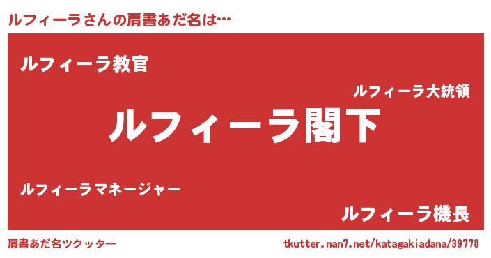 | 男性向けラノベタイトル風あだ名 | 『Re:ルフィーラから始める異世界生活』 |