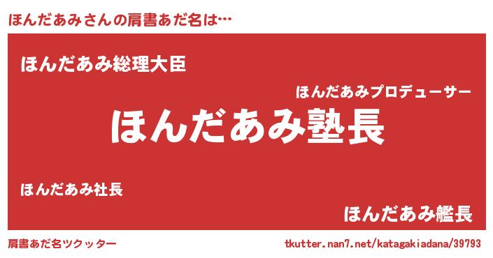 | 意味不明あだ名 | 『とにかく怪しいほんだあみ』 |