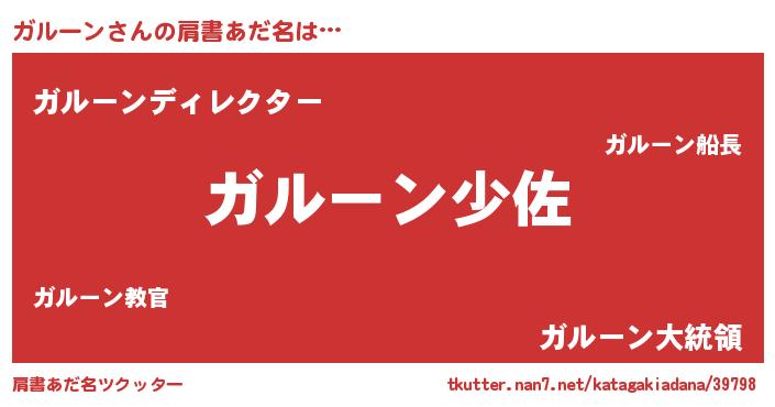 | ヒーロー風カッコイイあだ名 | 『ウルトラガルーンマン』『仮面ガルダー』 |