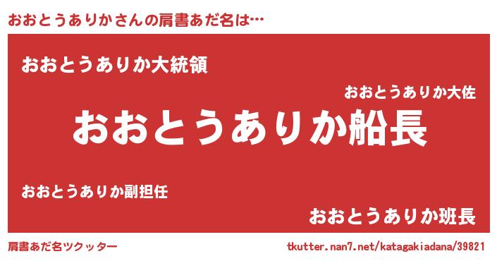 | 意味不明あだ名 | 『おおとうありかフォーエバー』 |