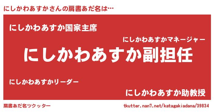 | 意味不明あだ名 | 『永久保存にしかわあすか』 |