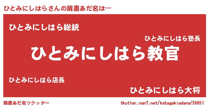| 意味不明あだ名 | 『住所不定無職ひとみにしはら(43歳)』 |