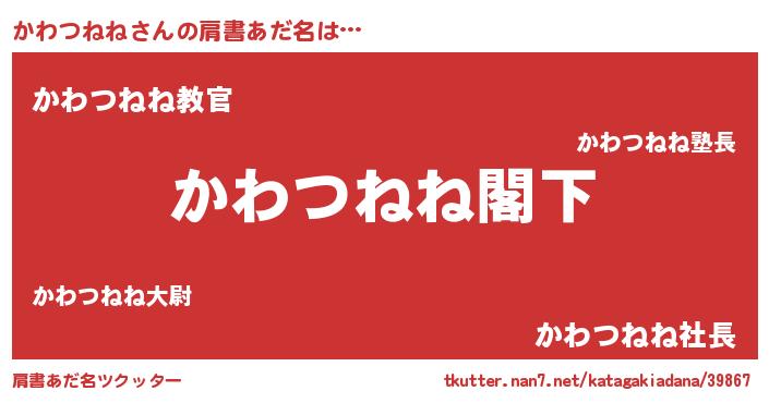 | 男性向けラノベタイトル風あだ名 | 『Re:かわつねねから始める異世界生活』 |