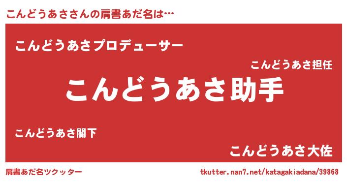 | 女子向けラノベタイトル風あだ名 | 『死神こんどうあさの再婚』 |