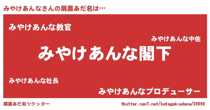 | 女子向けラノベタイトル風あだ名 | 『みやけあんなストレイドッグス』 |