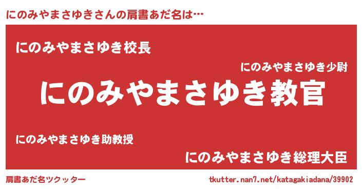 | 意味不明あだ名 | 『住所不定無職にのみやまさゆき(53歳)』 |