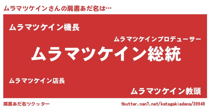 | 女子向けラノベタイトル風あだ名 | 『ムラマツケインなんてお断りですっ。』 |