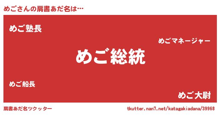 意味不明あだ名 | 『自称めご』『とにかく怪しいめご』 |