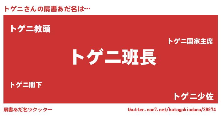 | ポケモン風あだ名 | 『ヒトゲニ』『ゼニトゲ』 |
