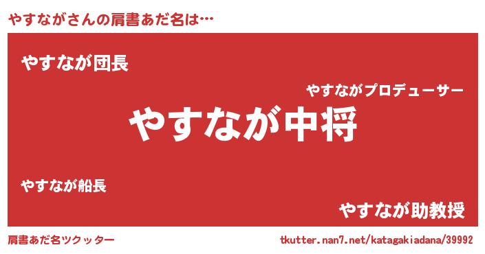 | ポケモン風あだ名 | 『ヤスキング』『ヒヤスナガ』 |