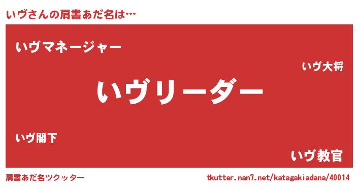 | ヘコむあだ名 | 『いヴっちょ』『豆乳』『いヴ(苦笑)』 |