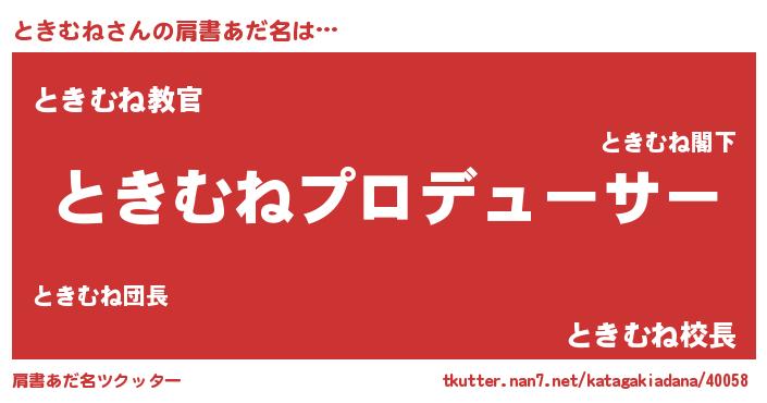 | ヒーロー風カッコイイあだ名 | 『仮面トキダー』『ネオトキムネ』 |
