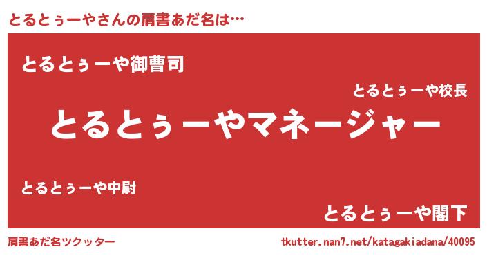 | ヘコむあだ名 | 『とるふぇ~』『とるとぅーや(震え声)』 |