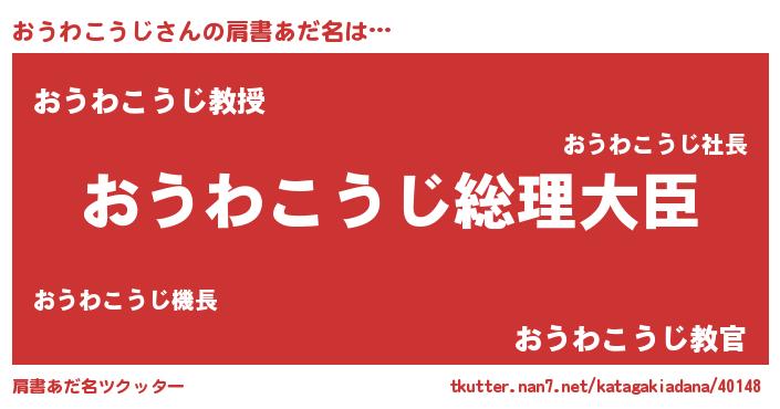 | 男性向けラノベタイトル風あだ名 | 『やはりおうわこうじの青春ラブコメはまちがっている 』 |