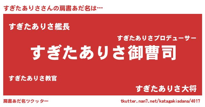 | 胡散臭い通販商品みたいなあだ名 | 『モテモテ間違いなし霊験あらたかなお札…その名も「すぎたありさ」』 |