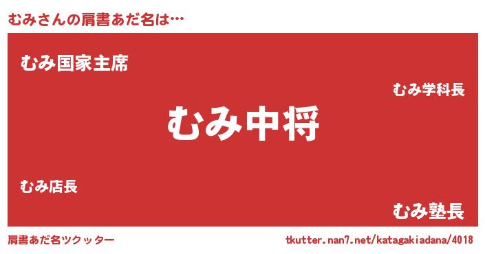 | 男性向けラノベタイトル風あだ名 | 『むみ~年齢イコール彼女いない歴の魔法使い~』 |