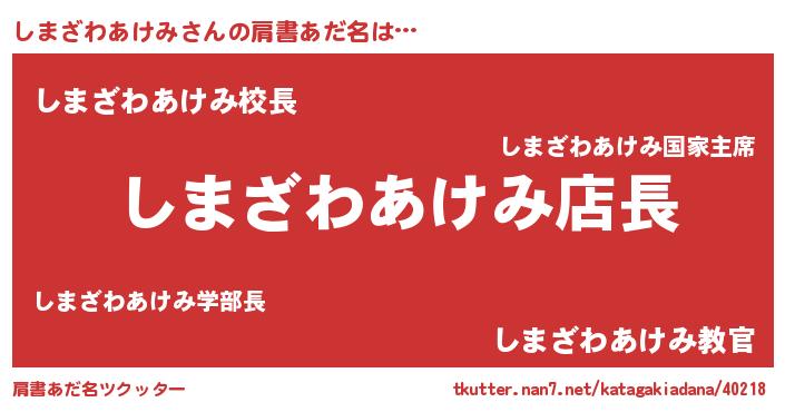 | 男性向けラノベタイトル風あだ名 | 『しまざわあけみの憂鬱』 |