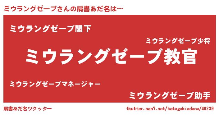| ポケモン風あだ名 | 『ミーウイ』『ミウセウス』 |
