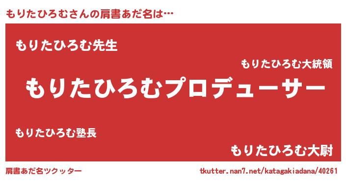 | 男性向けラノベタイトル風あだ名 | 『もりたひろむに滅ぼされるだけの簡単なお仕事です』 |